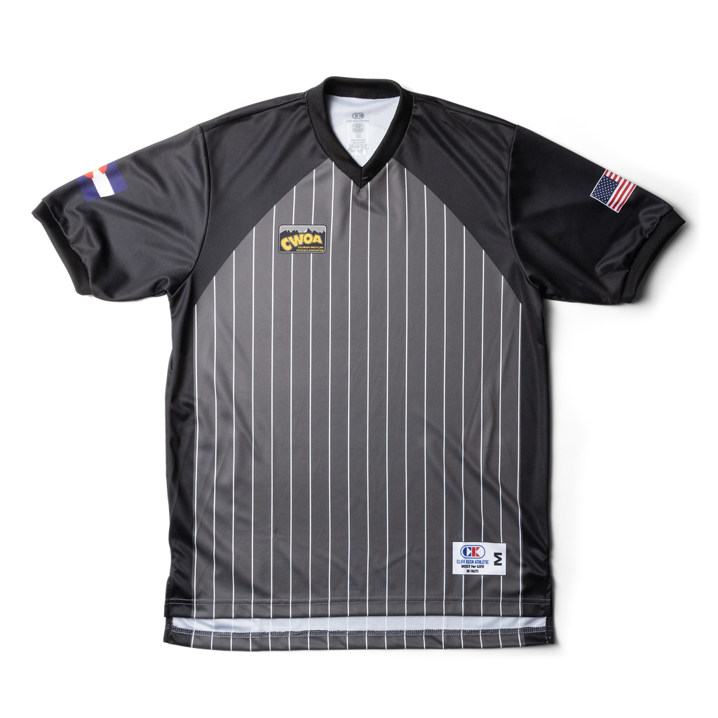 The official shirt of the Colorado Wrestling Officials Association, this Cliff Keen classic delivers unmatched comfort, professional style, and all-day performance. Built with our elite MXS® Loose Gear fabric, the CWOA Officials Shirt is engineered to wick moisture, stay lightweight, and keep you cool under pressure. Featuring fully sublimated pinstripes, the American flag, and the CWOA logo, all graphics are dyed directly into the fabric, eliminating bulky patches or heat seals that trap sweat or cause discomfort.