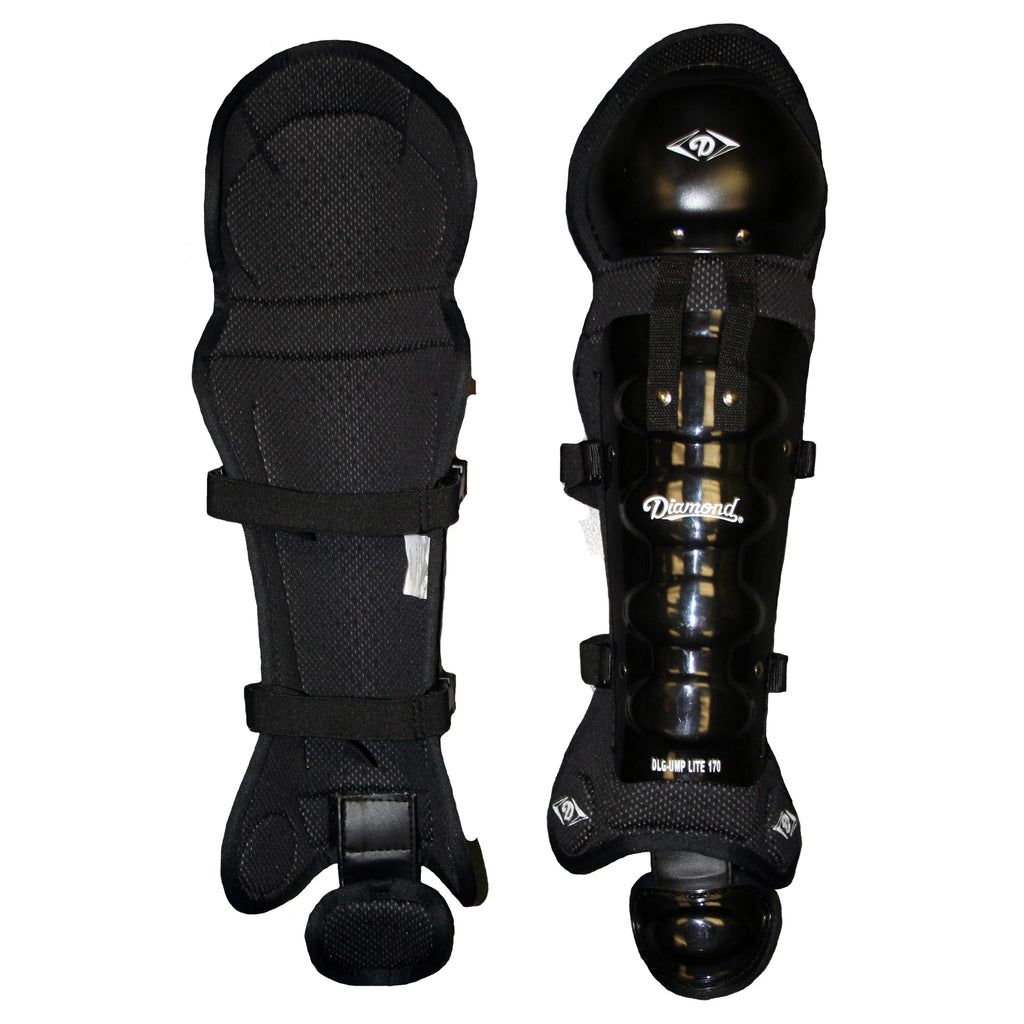 Diamond Ump Lite Leg Guards. Features Diamond Grid Tech foam for superior ventilation and comfort. Extremely light weight plastic. Durable snap-loc Tifco buckles. Removable toe extensions. Available in 15 inch and 17 inch Posi-Fit lengths.