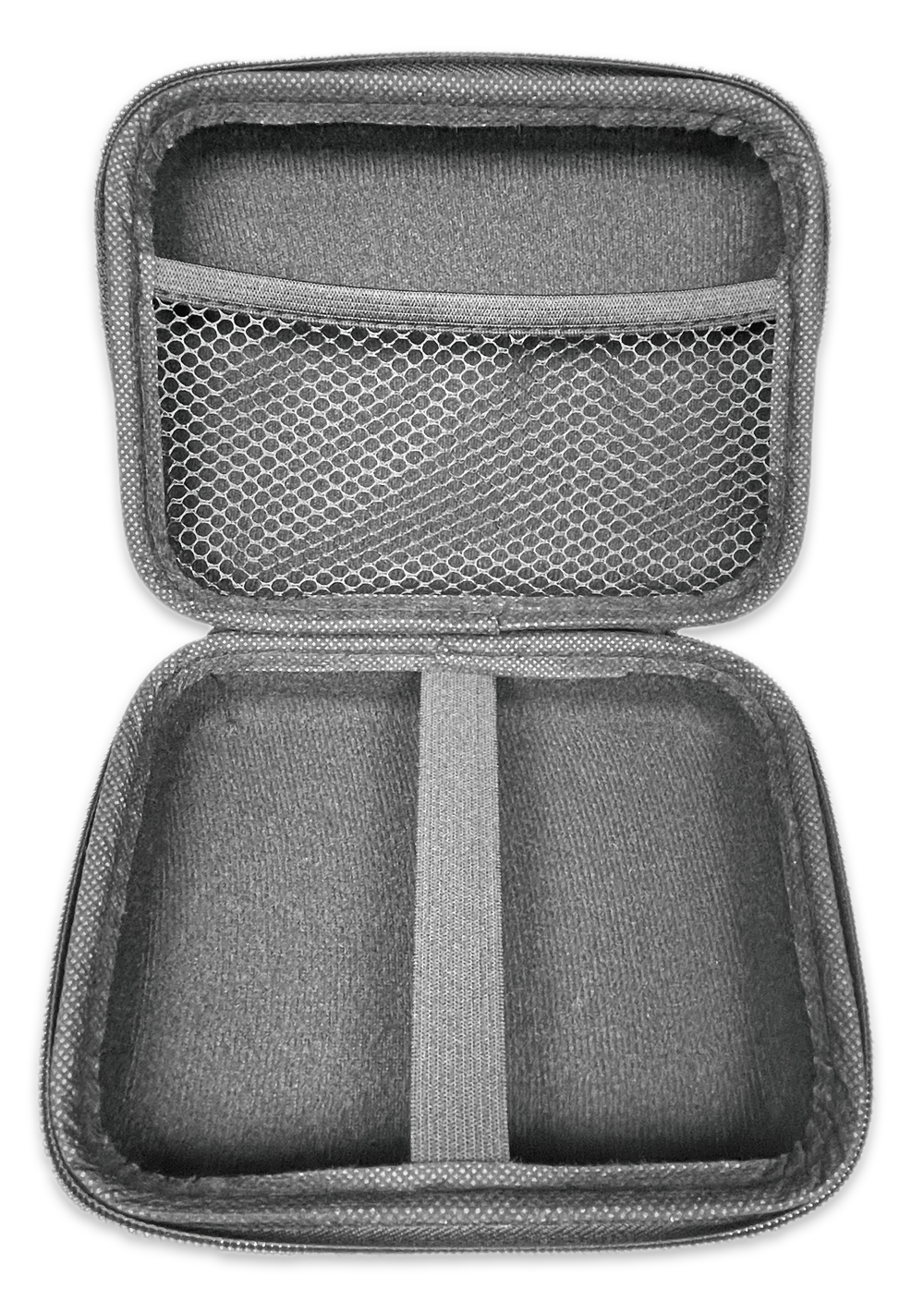 Your ultimate companion for organization, protection and convenience. Black EVA Storage Case size 6.5"L x 5"W x 2.5"H with black zipper is perfect for your wristbands and accessories. This helpful storage case is designed to simplify your life and keep your gear clean, dry and easily accessible. The strap will keep your wristbands secure while the mesh net is perfect storage for ankle bands, discs and accessories.