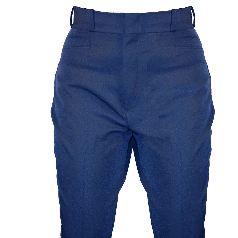 Fechheimer Pro-Quality Women’s Navy Plate polyester knit pants with metal zipper closure. Pant features Freedom Fit waistband-2 zones of stretch, two western cut pockets, creases set and pressed. Pants are cut fuller to accommodate shin guards. NOTE: All pants come unhemmed.